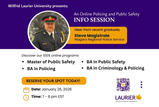 Sign up for our January 26th info session to learn more about our programs and hear from Master of Public Safety alumnus, Steve Magistrale, of the Niagara Regional Police Service.