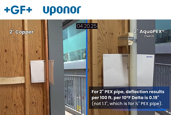 To challenge this misconception about PEX expansion characteristics, a team at Fleming College in Peterborough, Ont., used the state-of-the-art plumbing design and training lab called “Kube” in their Kawartha Trades and Technology Centre to set up a real-world comparison between PEX and copper in riser applications.