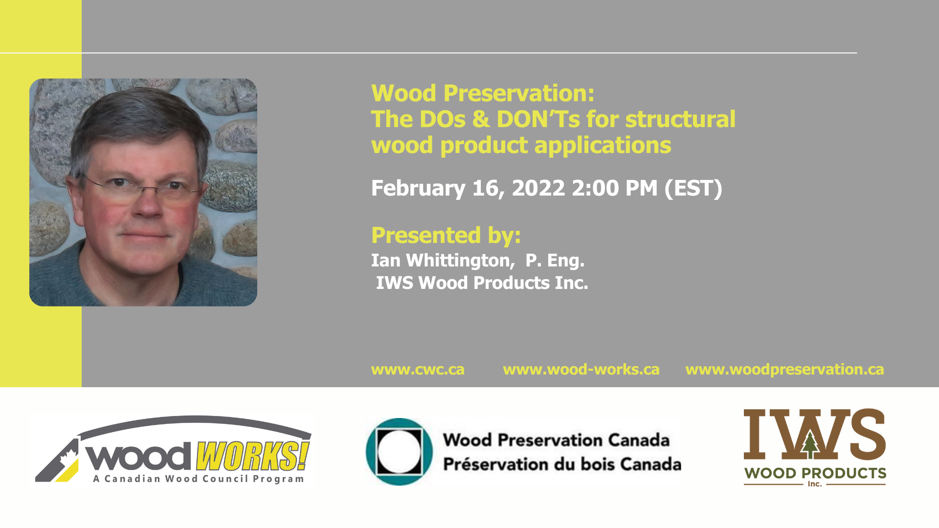 FEBRUARY 16TH - WOOD PRESERVATION: THE DOs & DON'Ts FOR STRUCTURAL WOOD PRODUCT APPLICATIONS