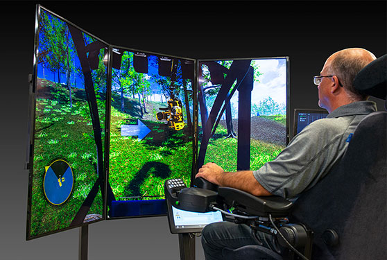 The Tigercat Simulator provides a virtual cut-to-length operator training solution with an ultra-realistic operating environment. The advanced system can simulate the controls and operation of both the 1075C forwarder, and an eight-wheel drive 1165 harvester equipped with the 534 harvesting head. Features and benefits of the Tigercat simulator include: