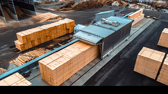 The bundles of the green lumber coming out of the sawmill are placed directly on the concrete slab. After drying process, you can leave them in place until you are ready to send them to the planner. Save two handling and associated cost.