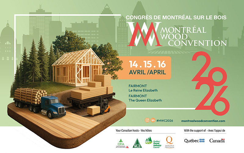Once again, Montréal and the Fairmont Queen Elizabeth Hotel will be the site for the Montréal Wood Convention from April 14 to 16, 2026.