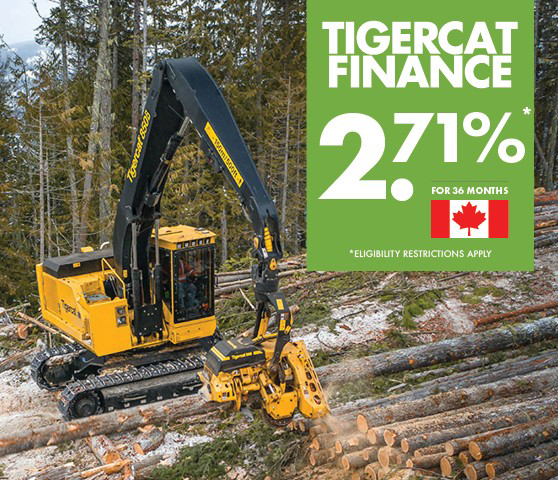 * Finance offers are available on approved credit for a limited time. Offers subject to change, continuation or cancellation at any time without notice. This program is available in Canada only and is applicable to Tigercat-TCi OEM products only. Non-Tigercat-TCi OEM products such as attachments may not be applicable for the reduced rate.