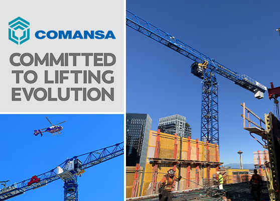 COMANSA is a leading manufacturer of flat top and luffing jib tower cranes. All cranes are built with the latest technology that is grounded in safe, reliable operation. They also are some of the simplest cranes to erect and dismantle because there is no tower top or pendant lines to assemble, and all connections are pin connected. Comansa’s North American branches offers sales, engineering support, service and parts to the U.S. and Canada from its locations in Charlotte, Dallas and Seattle.
