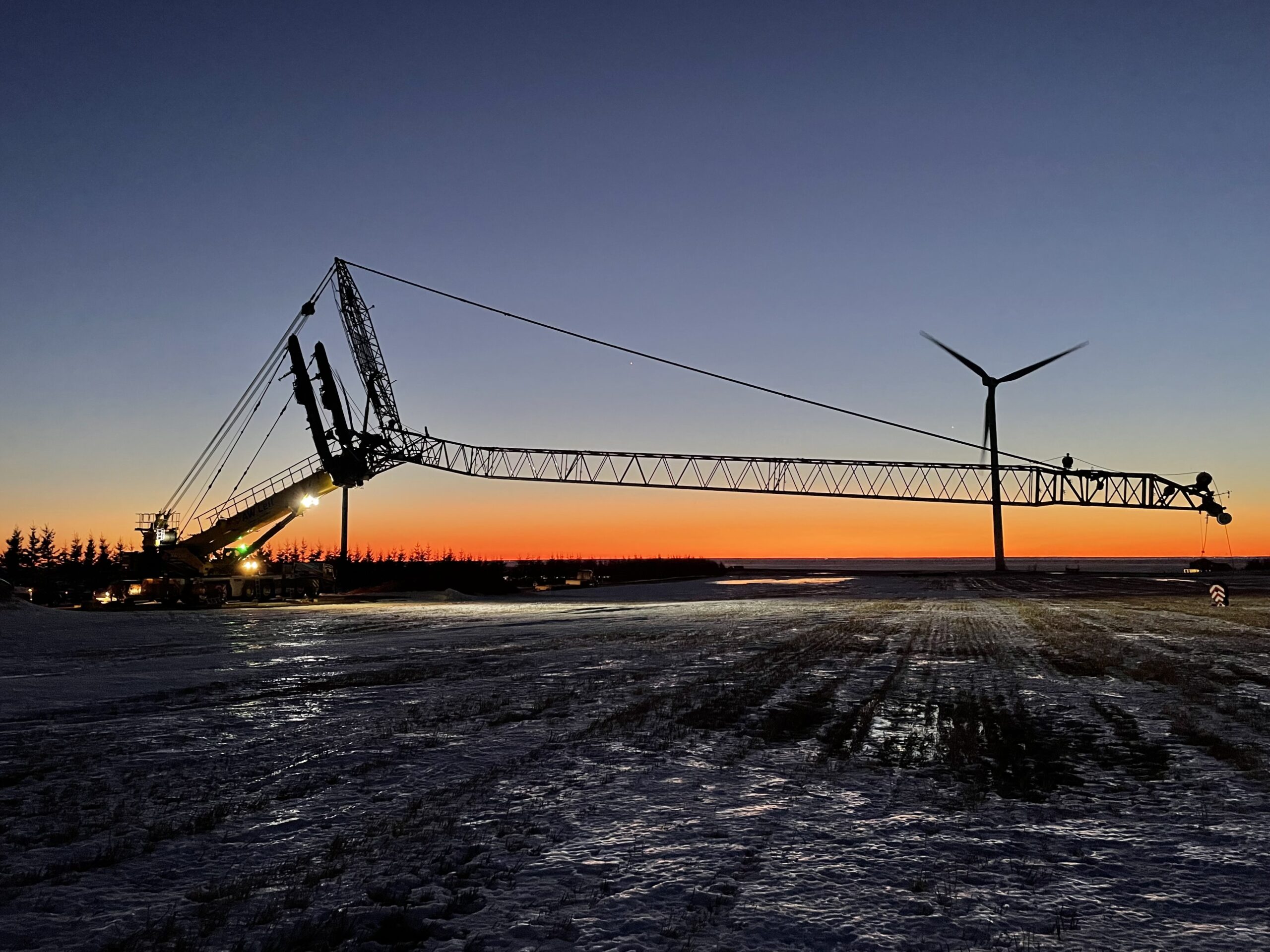 As A.W. Leil’s wind fleet continues to perform maintenance duties across much of the influx of turbines that arrived to the Atlantic provinces in the first two decades of the millennium, new demands are emerging from the increased urgency of Canada’s carbon goals and renewable energy’s role in achieving them – demands for bigger turbines, and more importantly, bigger cranes to put them together.