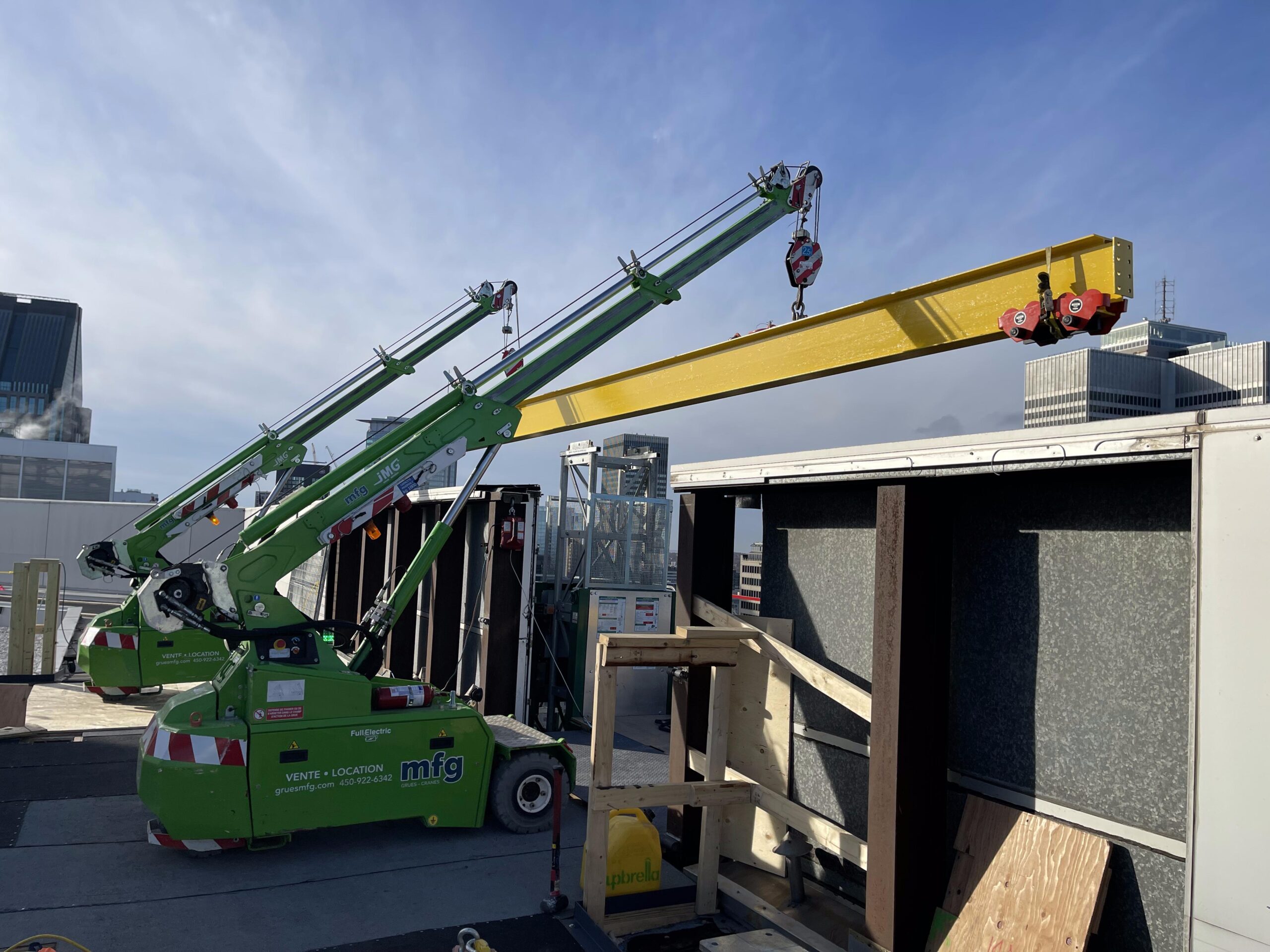 For 600 Rue De La Gauchetière Ouest, proponents opted for the spider crane to be diesel-powered and the carriers to be electric.
