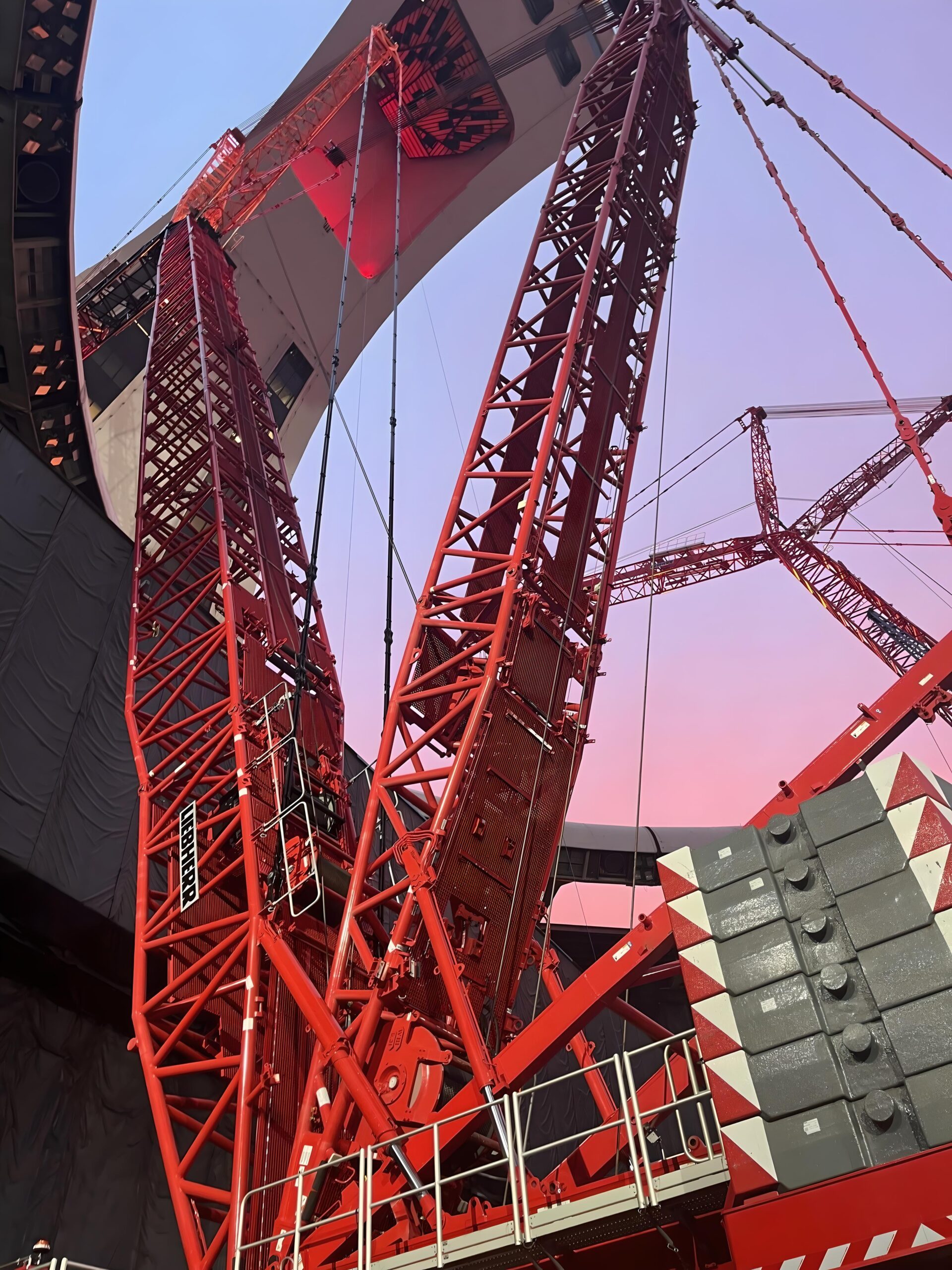 “The project required extremely precise planning and execution due to its unique constraints,” said GUAY’s sales team. “The limited space on the playing field, the atypical rigging, and the geometry of the stadium mast created conflicts with the dismantling path of certain roof components.”