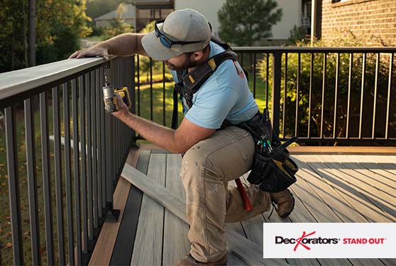 Homeowners may not notice structure, but they notice style. With Deckorators ® railing, you can deliver both. Our wide range of railing options helps contractors build distinctive, durable outdoor spaces that Stand Out™.
