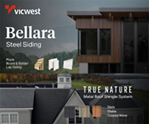 Elevate your projects with premium steel siding and roofing solutions from Vicwest. Bellara Steel Siding combines the natural beauty of wood with the strength of steel, available in Plank, Board & Batten, and Lap Siding profiles. For durable, high-performance roofing, the True Nature Metal Roof Shingle System delivers the authentic look of Slate, Shake, and Coastal Wave with the longevity of steel. Engineered for lasting performance and stunning aesthetics, Vicwest products offer unmatched durability and style.