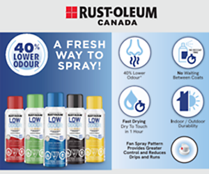 Rust-Oleum Low Odour spray paint is a water-based formulation designed to minimize odour while spraying. This fast-drying, low odour spray delivers solvent-based coverage and durability but with a water-based chemistry. The extensive colour pallet includes top selling colours and designer inspired colour to compliment current trends. With the same spray experience and durability of traditional sprays, this innovative paint solves the odour issue most onsumer DIYers face with other traditional spray paints