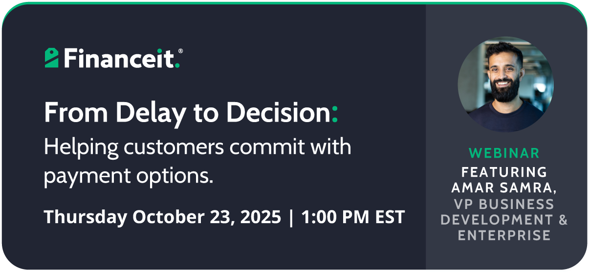 Join Financeit’s VP Business Development & Enterprise, Amar Samra for an exclusive webinar where we’ll walk you through how to overcome sales objections and boost your business with flexible payment options.