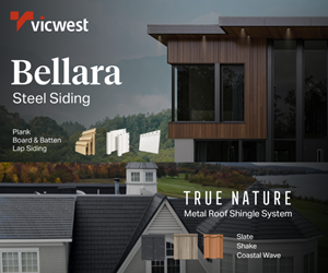 Elevate your projects with premium steel siding and roofing solutions from Vicwest. Bellara Steel Siding combines the natural beauty of wood with the strength of steel, available in Plank, Board & Batten, and Lap Siding profiles. For durable, high-performance roofing, the True Nature Metal Roof Shingle System delivers the authentic look of Slate, Shake, and Coastal Wave with the longevity of steel. Engineered for lasting performance and stunning aesthetics, Vicwest products offer unmatched durability and style.