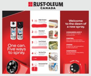 Rust-Oleum® Painter's Touch® 2x Ultra Cover™ with Custom pray 5-in-1 combines breaking-through paint technology to provide ultra coverage on surfaces such as wood, metal, wicker and ore while letting you choose from 5 spray patters with a twist of the dial. Whether you're painting wide spaces, tight corners or textured surfaces, the Custom Spray 5-in-1 gives you ultimate control for superior results. When you're done, turn the dial to the lock position and store the remaining spray paint for your next project.