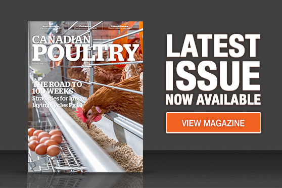 The November issue of Canadian Poultry shines a spotlight on feed and nutrition — the foundation of bird health, welfare and productivity. Our cover story, “The road to 100 weeks,” explores how strong nutrition strategies can help keep hens healthy and laying longer. We also highlight cutting-edge developments in “Ingredient innovations” that are boosting both performance and sustainability and take a closer look at how phytogenics are carving out a bigger role in modern poultry diets. Plus, learn why giving broilers control over their lighting can lead to calmer, healthier flocks. Don’t miss this issue packed with practical, research-driven insights to help producers feed for success.