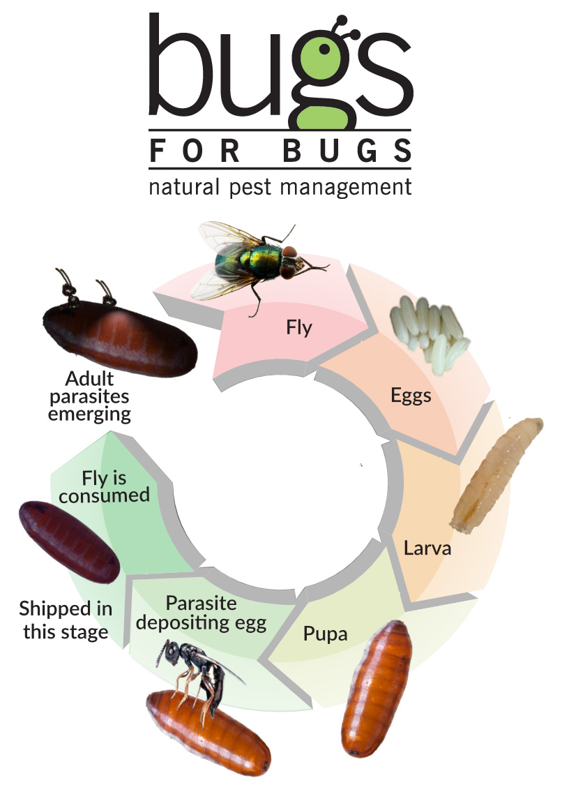 Fly parasites are a well-known and proven method of fly control. They are superior to pesticides because they kill the fly in the pupal stage, before they develop into adult flies. They kill the fly before they become a pest!