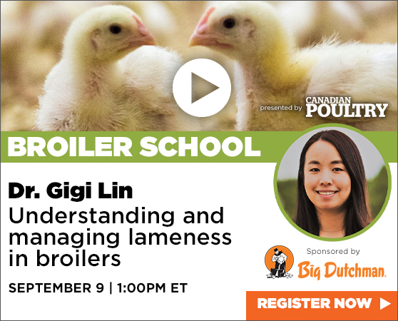 - September 9 – Dr. Gigi Lin – Understanding and managing lameness in broilers
