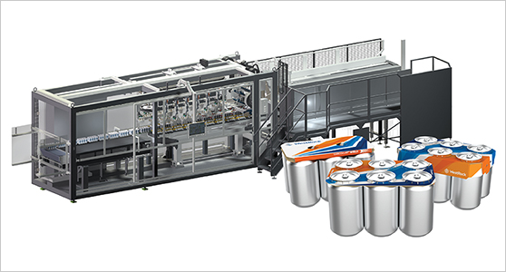 The CanCollar® Fortuna™ system is the fastest and most flexible solution for fiber-based alternatives to plastic rings and shrink film can packs. As a small footprint machine, the Base Fortuna fits seamlessly into existing line layouts and delivers speeds of up to 600 packs per minute.