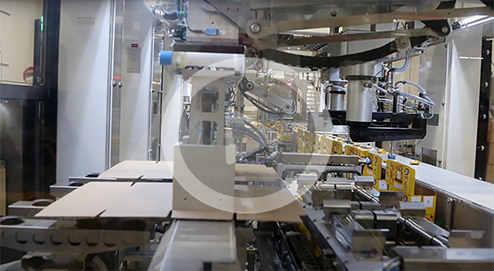 Watch as blank cartons are selected, opened for top fill, filled and then sealed and directed toward the Schubert case packing station.