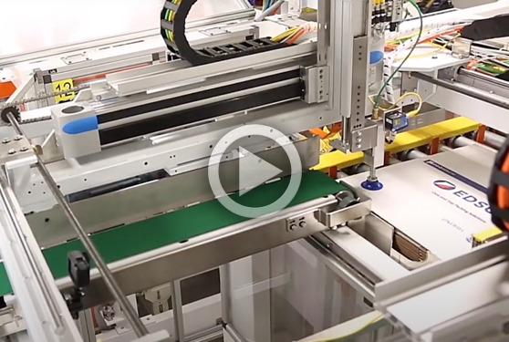 Listen to Mike Fluit, Controls Supervisor at Edson, and watch as he demonstrates the dexterity of the brand new gantry system for loading Knocked Down Flats of corrugated cases for transfer to the packing station of the Edson 3600 High Speed case packer.