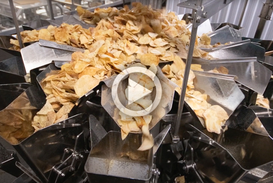 After weighing and bagging, the filled chip bags progress through seal checkers that automatically correct air pressures in chip bags or reject unsatisfactory bags. Follow the chip bags as they move into one of 4 fully automatic case packers. “These are the most compact machines of their type in the market and the large touch screen HMI allows for easy detection and resolution of issues. With manual labour hard to find, these case packers are the solution.”