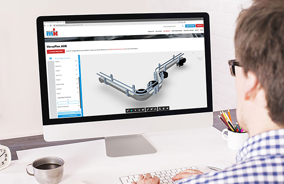 mk's CAD360! allows you to effortlessly model and download not only the simplest of conveyors, but also entire conveyor systems as featured in our VersaMove line. Simply input the desired values for length, width and height. Select drive location and which options you would like and the model is generated right before you
