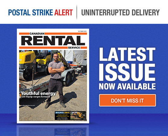 As a valued subscriber to Canadian Rental Service, you are used to receiving the print edition in your mailbox on a regular basis. Given the ongoing Canada Post strike, your next issue may be a bit late. In the meantime, please enjoy the same relevant content but in our easy-to-use digital edition.