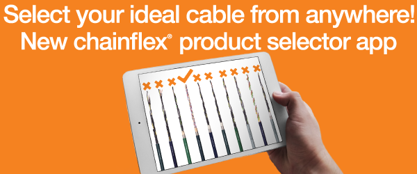 With the chainflex™ product selection app for iPad, quickly and easily specify the best cable for your application on the go! The free app allows you to select cable type, jacket material, certifications, and more, then proceed to pricing and ordering information. Download the app, completely free of charge, or use the online version if you prefer to access it that way!