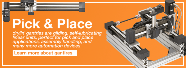 Improve your assembly application with self-lubricating motorized gantries. drylin® E is a low cost and maintenance-free solution when your machine needs to travel across a pre-defined distance.