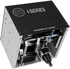 The compact I-Mark™ I series "Silent Scribe" marking head is approximately 7 x 7 x 7-inches in size and has a marking window of 2.35 x 1.59-inches. The solid aluminum frame offers a choice of 3 sides to mount on, allowing for extreme flexibility when integrated the marking system into automated production equipment. The x-y CNC movement for the marking head is provided by high torque stepper motors and ball screw drives which mark up to five (1/8") characters per second with good quality readability. The I-Mark I-series has the flexibility with it’s pneumatic marking pin and diamond tip to inscribe a wider range of different materials including ferrous and non-ferrous metals than standard carbide tipped dot-peen systems. The CNC controller for the marking unit has Ethernet, USB, and I/O connections.