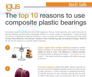 Read this tech talk to learn about the top 10 reasons why you should use iglide� plastic bearings.
