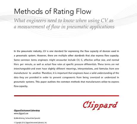 What engineers need to know when using CV as a measurement of flow in pneumatic applications in the pneumatic industry, CV is one standard for expressing the flow capacity of devices used in a pneumatic system. However, there are multiple other standards that also express flow capacity. Some common terms engineers might encounter include CV, C, effective orifice size, and normal liters per minute, as well as actual flow rates at specific pressure differentials.