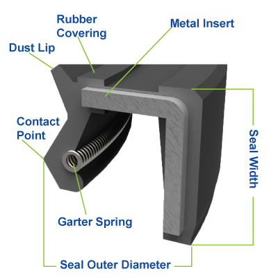 For a seal to optimally operate requires the appropriate design of the two components that the seal interacts with - the Bore and the Shaft. The Bore should have an adequate lead in chamfer and proper tolerancing to allow a proper press fit of the seals outer casing when installed, this will prevent leakage between the seal and bore and eliminate any rotating or movement of the seal during operation. Manufacturing the shaft with proper lead in chamfer, appropriate diameter and surface finish will increase seal performance and extend the operating life of the seal. Minimizing shaft movement (run-out) and misalignment will increase sealing performance and limit seal lip wear.