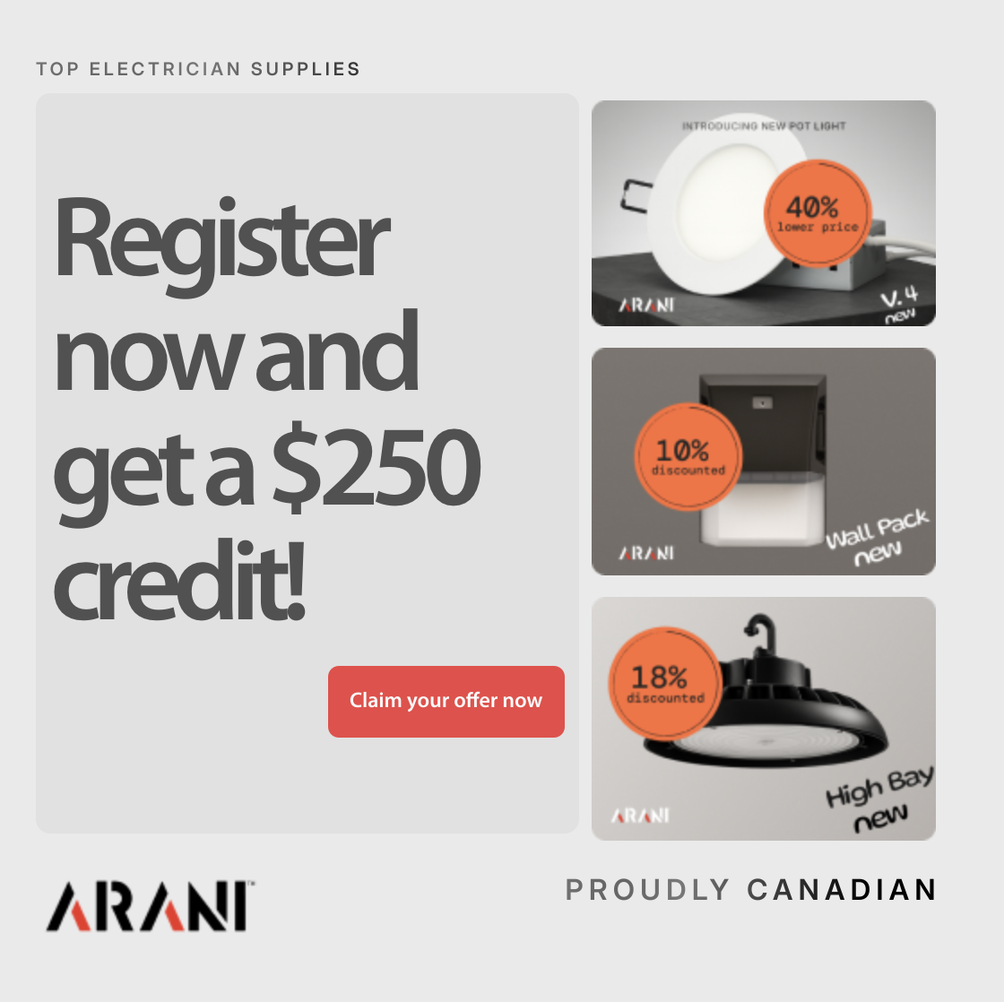 At Arani, we make it easy to get the electrical supplies you need—fast, reliable, and without the premium price tag. Whether you’re installing LED lighting or setting up EV chargers, contractors trust Arani for quality products, quick delivery, and exceptional value every time.