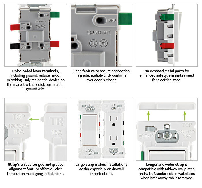 Leviton’s Lever Edge family of switches and receptacles continues to redefine installation with a faster, safer, and easier approach.