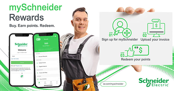 Earning is simple. Once you create your account on the mySchneider portal and enroll in the Rewards Program, you can begin earning rewards points by making qualifying purchases and uploading your invoices through the portal. You will also receive access to special promotions, and limited time opportunities that help you earn rewards points even faster.
