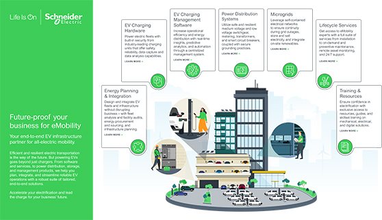 Whether you’re planning your first EV deployment or scaling an entire fleet, Schneider Electric provides the expertise and technology to make it happen—sustainably and cost-effectively.