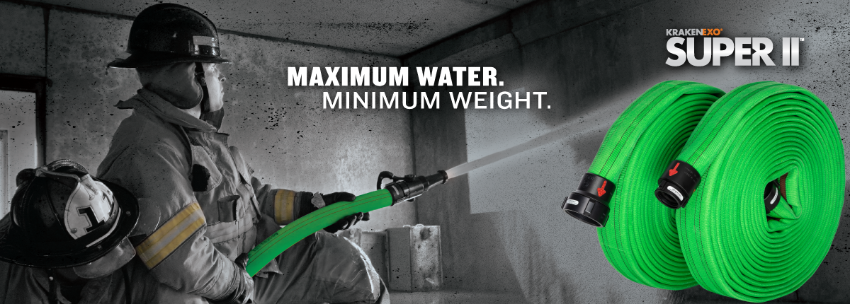 Introducing the all-new KrakenEXO SUPER II™ — the most advanced 2” attack hose, capable of delivering 210-300 GPM with 30% less weight for superior maneuverability and performance.