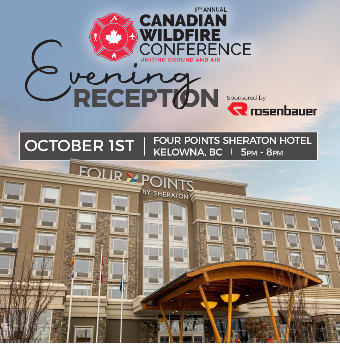 After an inspiring first day of sessions, join Rosenbauer on October 1 for an exclusive evening reception at the Four Points Sheraton Hotel in Kelowna.