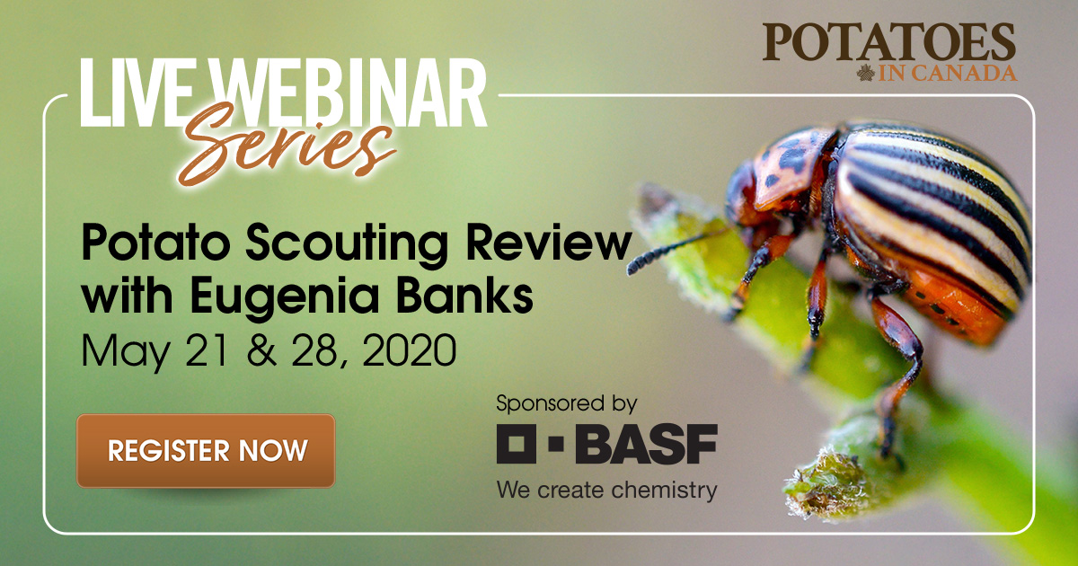 Given COVID-19, Eugenia Banks, potato specialist with the Ontario Potato Board, is bringing her annual training day online to a live webinar series to ensure scouts and growers are prepared for the 2020 growing season.