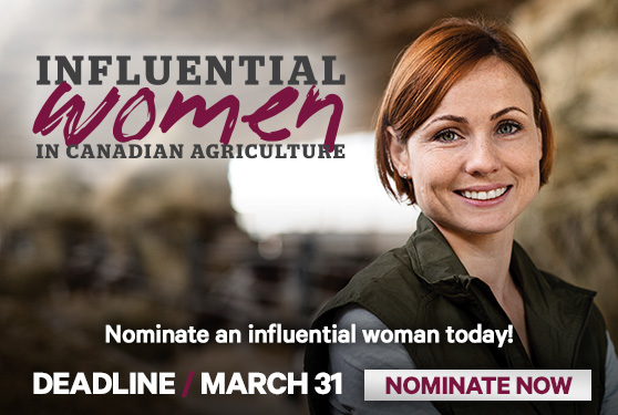 Now in its fourth year, the Influential Women in Canadian Agriculture (IWCA) program was created to recognize women leading the charge and driving change across Canada’s agricultural sector. We’re looking to honour six Canadian women demonstrating leadership on the farm, in the research lab, in the classroom or in the office.