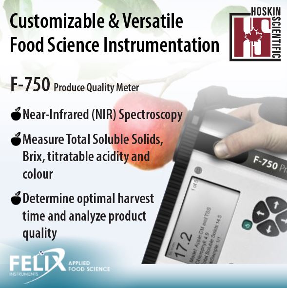 The F-750 Produce Quality Meter uses near-infrared (NIR) spectroscopy to estimate quality metrics such as dry matter, Total Soluble Solids (TSS or brix), titratable acidity, and color.