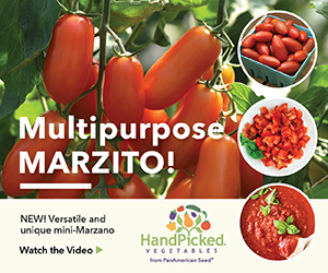 Marzito is versatile and perfect for all occasions. Use it in a sauce or eat it fresh like a cherry or grape tomato. The elongated shape is reminiscent of a small Roma tomato with firm texture and sweet, rich flavor. Plants offer great resistance to leaf mold, Fusarium, nematodes and tobacco mosaic virus. Best grown in-ground, including high tunnel applications. Part of the HandPicked Vegetables® Collection from PanAmerican Seed®. Contact your seed supplier for availability.