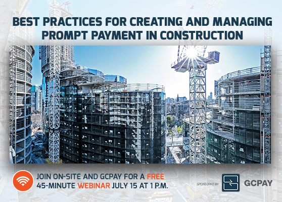 Join On-Site and GCPay for a free, 45-minute webinar July 15 at 1 p.m. ET. We'll discuss best practices for handling new prompt payment regulations and modernizing your payment solutions in the rapidly evolving construction market.