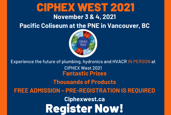 Finally, we can get back to in-person shows. Come join us at CIPHEX West 2021, taking place IN PERSON at the Pacific National Exhibition – Coliseum in Vancouver, British Columbia on November 3 & 4, 2021. Attend to experience the future of plumbing, hydronics and HVACR IN PERSON.