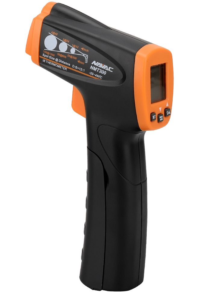 NAVAC NMT300 determines surface temperature by measuring the infrared energy of target surface. Its low power consumption design allows for a long-lasting operation. High-precision infrared sensor is quick and accurate in getting surface temperature.