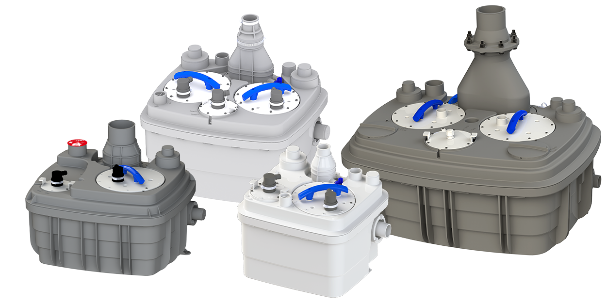 Pre-assembled simplex and duplex lift stations with either a grinder or a vortex impeller, capable of discharging wastewater from multiple fixtures. |