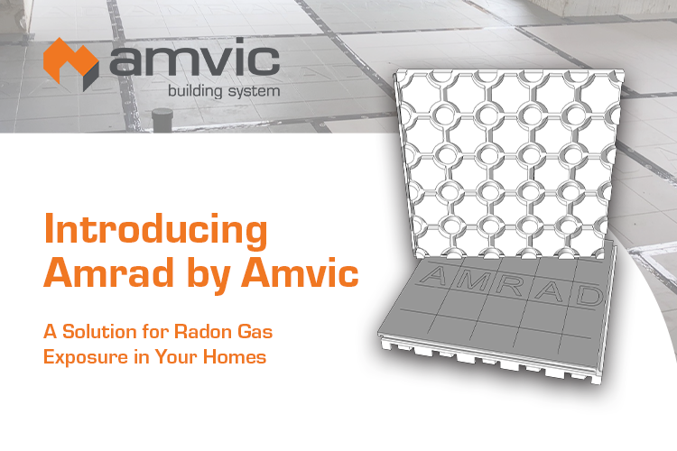 That is why, Amvic is proud to introduce a new product called Amrad which is an insulated under slab depressurization panel, and a key component in a radon gas mitigation system. The space created by the integrated channels serves as an air gap for soil gas collection which means that the radon gas can vent out to the exterior using a connected PVC piping with a continuously running exhaust fan. This panelized solution with its unique channel design, void percentage, film and foam density creates a strong and durable panel, giving builders the ability to build an insulated concrete slab while meeting radon building code requirements and improving the indoor air quality for occupants.