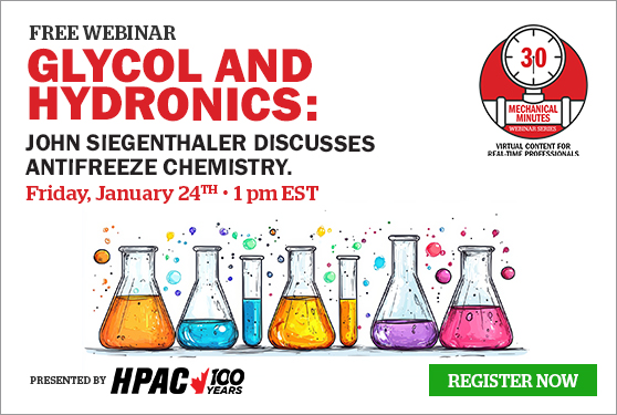 In this edition of 30 Mechanical Minutes, the free webinar series produced by HPAC Magazine, we speak with hydronics expert John Siegenthaler about the role of antifreeze in hydronics circuits.