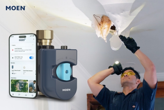 The Moen Flo Smart Water Monitor and Shutoff is a mainline water monitoring device for the home which monitors water, identifies leaks and alerts homeowners of potential issues before they become catastrophic.