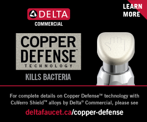 As the demand for constant sanitation of high-traffic environments continues to rise, so does the need for efficiency and effectiveness in killing bacteria on surfaces. Copper Defense™ technology with CuVerro Shield™ Alloys, by Delta® Commercial, is a unique series of plumbing products that feature an advanced copper alloy finish that exhibits impressive antibacterial properties.